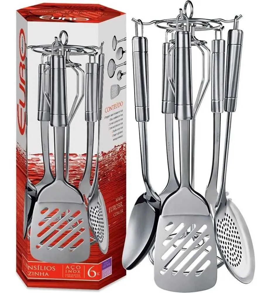 CONJUNTO DE UTENSILIOS DE COZINHA EM INOX EURO 6 PEÇAS