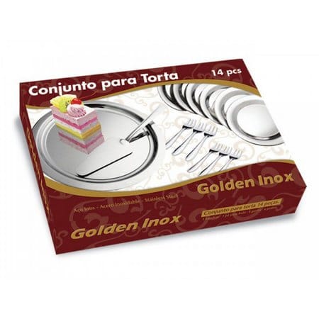JOGO PARA TORTA 14 PÇS GOLDEN INOX
