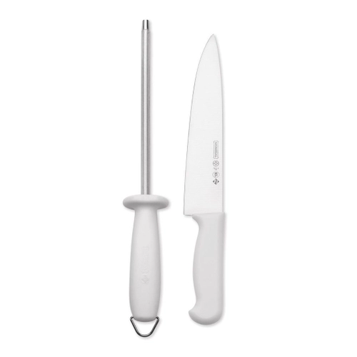 KIT FACA E CHAIRA BRANCO MASTER LINE 2 PECAS MUNDIAL